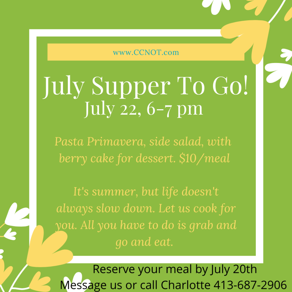 July 11, 2021Charlotte WeltzinLeave a Comment on Summer Supper To Go Summer Supper To Go Share this: Click to share on Facebook (Opens in new window) Facebook Click to email a link to a friend (Opens in new window) Email Like Loading... Related