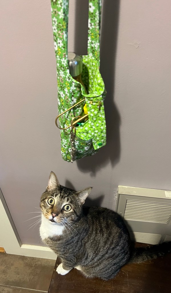 Just enough of a bag to hold your water (stay well hydrated), your phone, and a set of keys. Our whatever else you want for your walk. The strap is long enough to use across body or not.